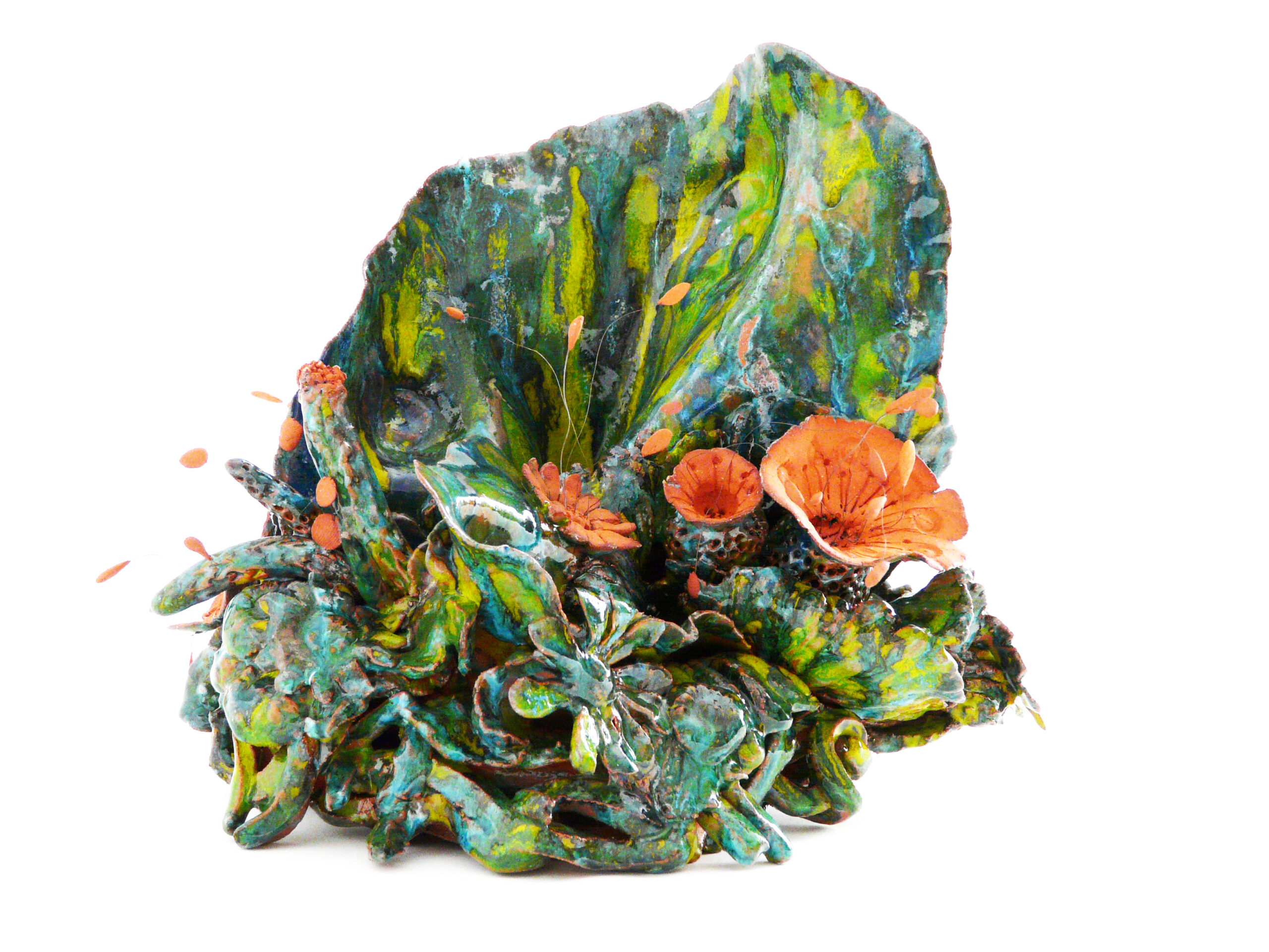 Noli me tangere Pistils “Pistils Veridis“, sculpture céramique, création de Florence Lemiegre, Faïence - Terre rouge Normande - 2025, protection des océans, biodiversité, fonds marins, vibration, un langage des mers, vibrations, oscillation, mouvements, protection des mers, faïence rouge de Normandie,