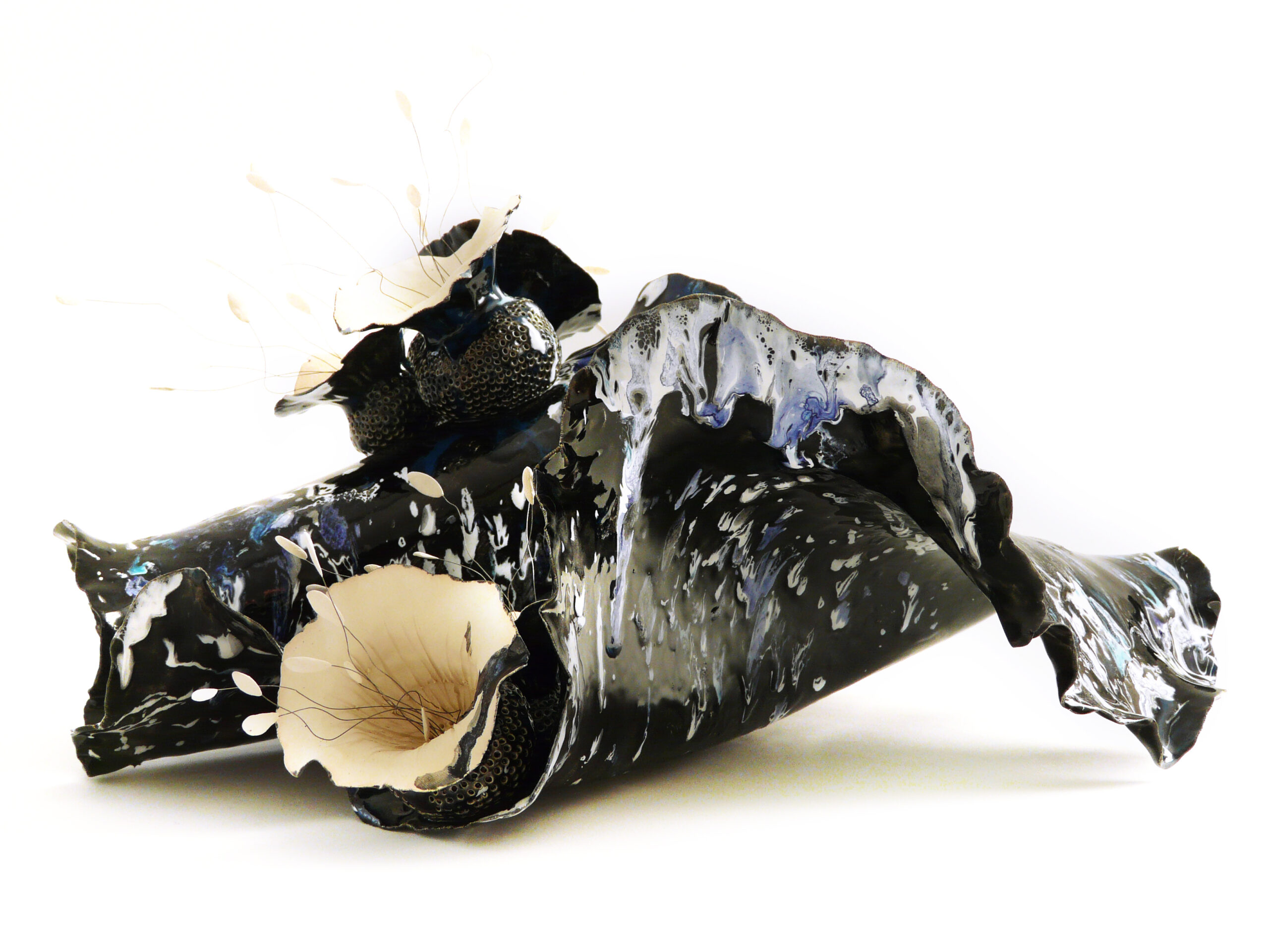 Noli me tangere Pistils “Blue black hadal“, Faïence, sculpture céramique, création de Florence Lemiegre, exposition Variations Poétiques, Ville d’Avray