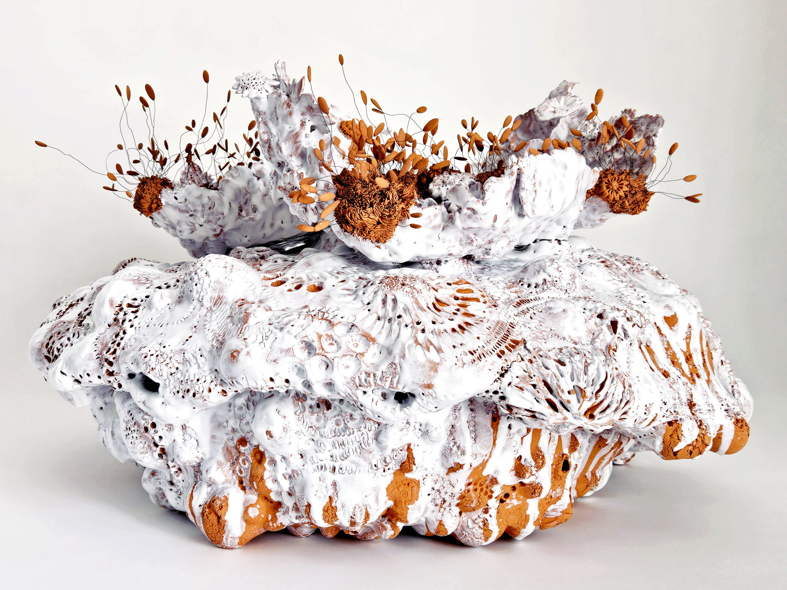 Noli me tangere Pistils “Cororora », création de Florence Lemiegre, Protection des océans, Vibrations, oscillations, langue océane, Sculpture céramique en faïence, terre rouge, Grand Palais, Art Capital 2026, salon Comparaisons