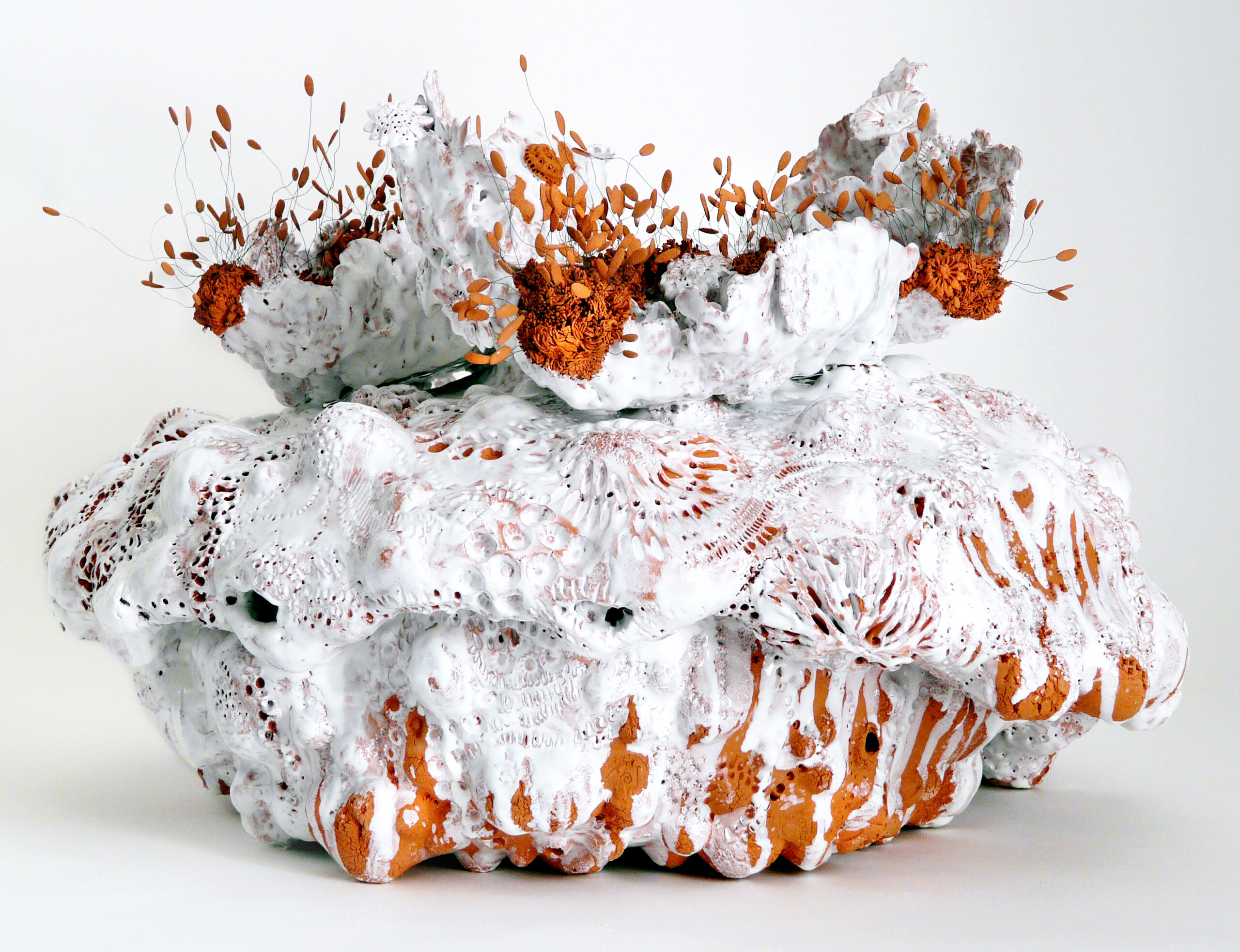Noli me tangere Pistils “Cororora », création de Florence Lemiegre, Protection des océans, Vibrations, oscillations, langue océane, Sculpture céramique en faïence, terre rouge, Grand Palais, Art Capital 2026, salon Comparaisons