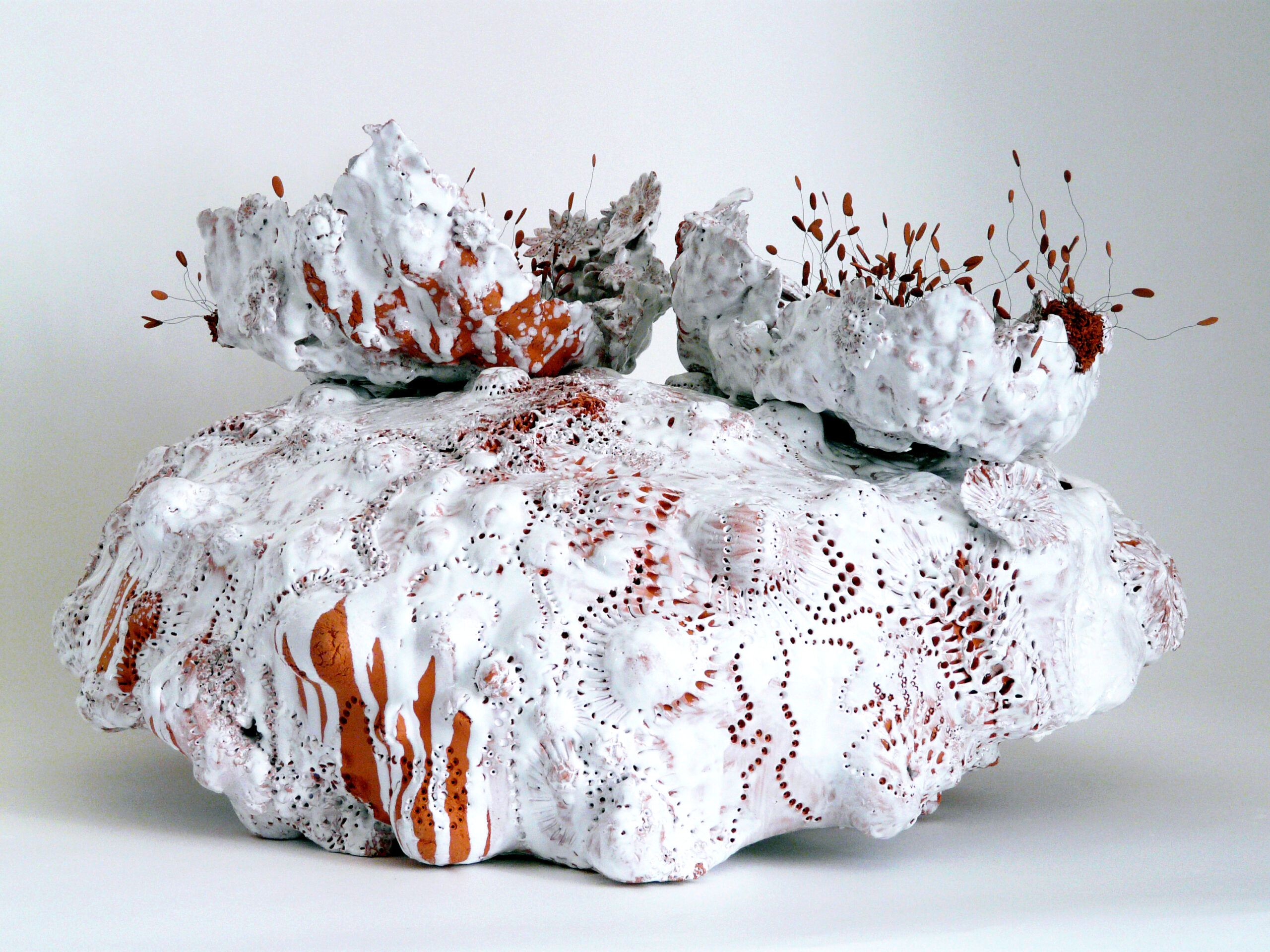 Noli me tangere Pistils “Cororora », création de Florence Lemiegre, Protection des océans, Vibrations, oscillations, langue océane, Sculpture céramique en faïence, terre rouge, Grand Palais, Art Capital 2026, salon Comparaisons